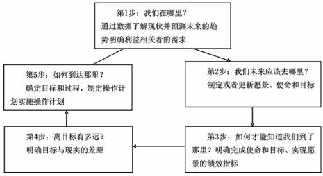 通过对五个问题的回答,学校评估发展现状,明确组织使命和目标,制定发展战略。其中第1、2和4步需要院校进行系统的自评,以分析院校现状。对第2个问题的回答,是院校制定战略目标的过程。第3步是制定衡量战略目标完成情况的绩效指标和基准。第5步则是安排如何实现院校的使命和目标,确定发展战略,制定具体的规划。宾夕法尼亚州立大学通过这一综合模式,以战略的眼光,规划学校发展,提高院校质量。