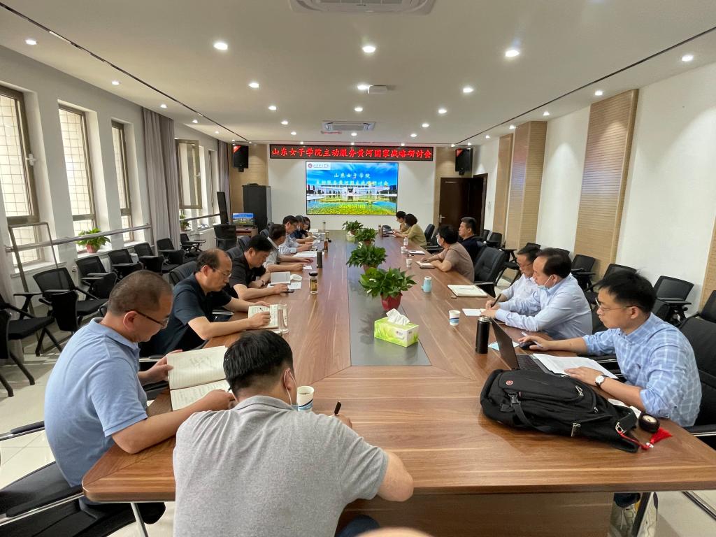 发展规划处刘中文处长首先解读了《山东省教育厅关于发挥高等教育特色优势主动服务黄河国家战略的通知》等文件,并就当前我校应该做的相关工作进行了部署。随后,各参会的职能部门和二级学院领导结合本部门、学院的实际,从瞄准黄河保护发展,调整优化学科专业结构;紧盯黄河国家战略需求,提升人才培养质量;聚焦黄河生态保护和安澜屏障,激发科技创新活力;锚定高质量发展,提供智力支持;开展互联互通,传承黄河文明等角度,就我校主动融入黄河流域生态保护和高质量发展提出了许多意见和建议。